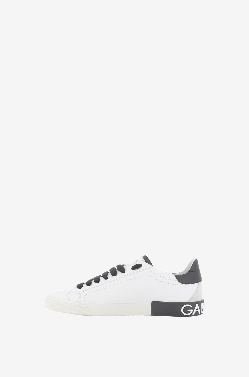 In diesen niedrigen Schnürsneakern von Dolce & Gabbana werden Sie sich wohlfühlen! Das ikonische, vom Tennis inspirierte Modell besticht durch sein zeitloses, minimalistisches Design. Die Sneakers sind aus weissem und schwarzem Glattleder gefertigt und weisen ein Wildlederdetail an den Fersen auf. Die zweifarbigen Gummisohlen tragen das Logo des Designer-Duos an der Ferse - eines DOLCE, das andere GABBANA. Runde Kappen runden diese sportlich-schicken Schuhe ab, die zu Jeans und Sweatshirt ebenso schick aussehen wie zu einem lässigen Anzug.