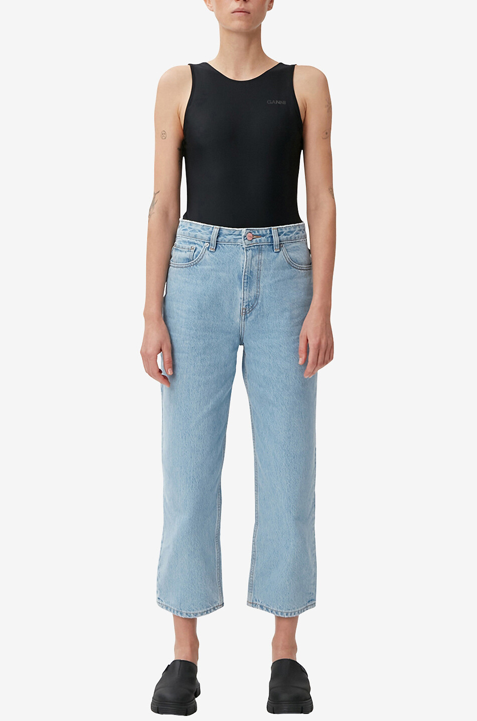 Schmeichelhaft und vom Vintage-Stil inspiriert ist diese Jeans mit hoher Taille aus der Denim Core Kollektion von GANNI. Sie hat ein lässig geschnittenes, gerades Bein. Getreu dem bewussten Ansatz des skandinavischen Labels wurde sie aus Bio-Baumwoll-Denim gefertigt. Die Five-Pocket-Jeans hat Gürtelschlaufen und einen Reissverschluss mit Knopf. Kombinieren Sie dazu ein bedrucktes T-Shirt oder ein in den Bund gestecktes Hemd und ergänzen Sie Ihren Look mit Sneakers oder Ballerinas.