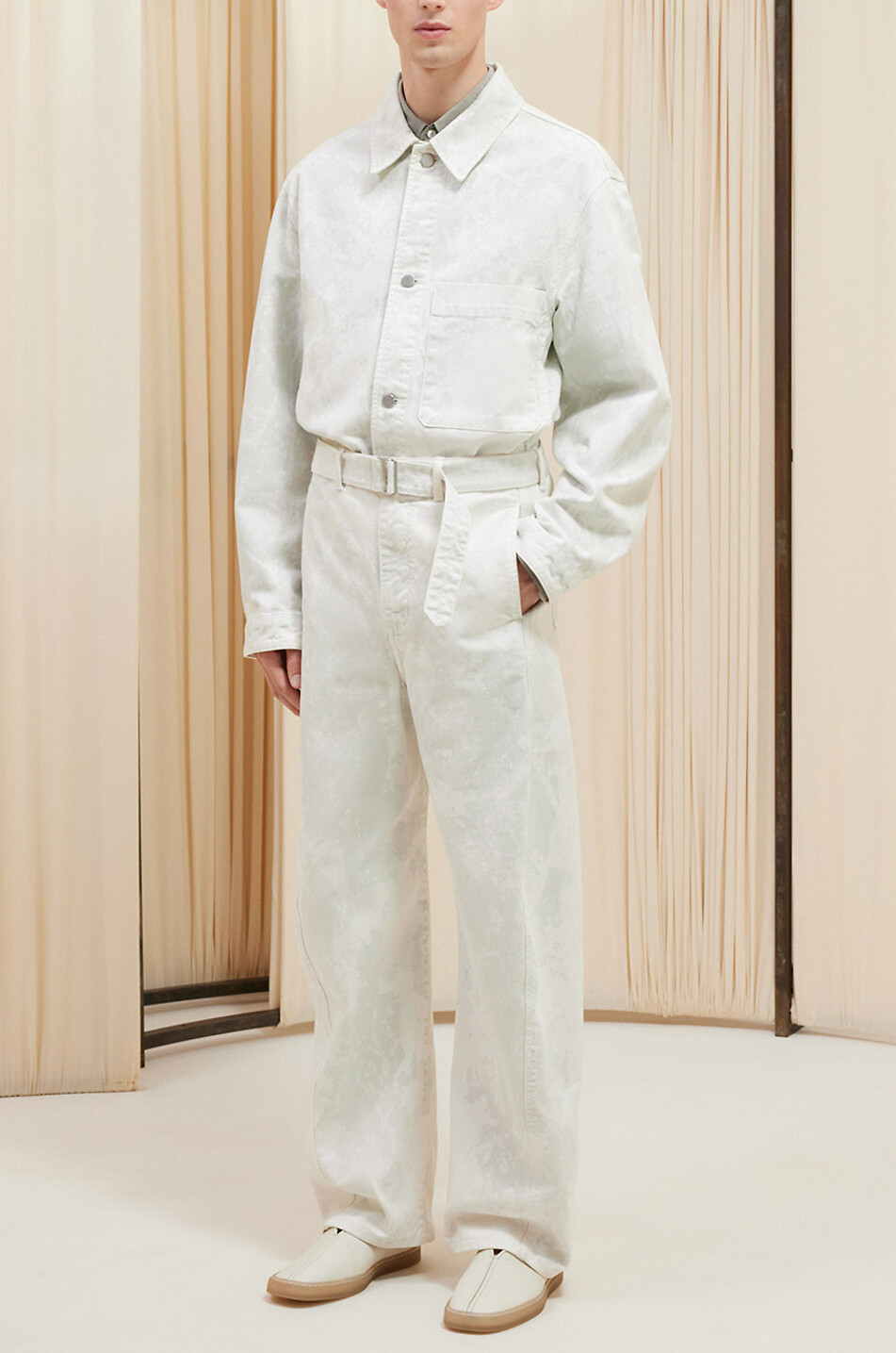 Diese betont moderne Jeans von LEMAIRE ist als Unisex-Modell konzipiert. Die weite Hose mit dem unerwartet geschwungenen Schnitt, der durch die verdrehten Nähte entsteht, ist aus Baumwoll-Denim gefertigt, der mit einem Batik-Effekt in dezenten neutralen Tönen verziert ist, der sich leicht in Ihre Garderobe einfügt. Spielen Sie mit seinem Volumen und tragen Sie Ihre Jeans mit einem figurbetonten Top und einem kastenförmigen Cardigan.