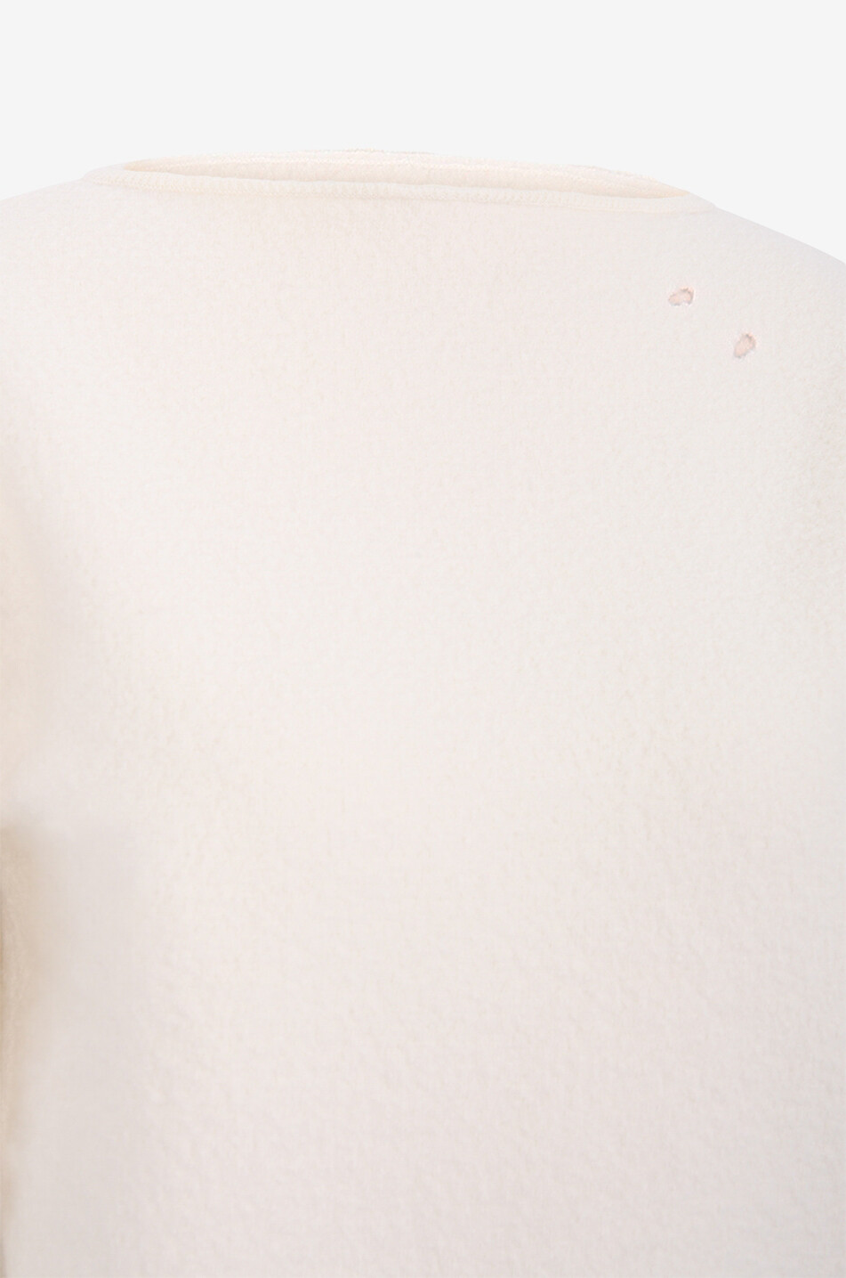 Dieser Pullover mit Rundhalsauschnitt für Damen von MM6 ist mit seiner kurzen Passform, den tiefangesetzten Schultern und den dekorativen Lochdetails ein modernes Kleidungsstück. Mit seinem langen, leicht gepufften Ärmeln und der Materialzusammensetzung aus Schurwolle wird er schnell zum Basic Ihrer Wintergarderobe.