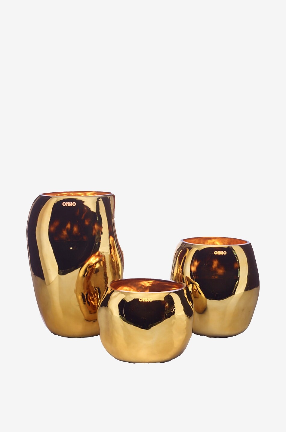 Für edle Akzente in Ihrem Heim sorgt diese Duftkerze von ONNO. Der feine Duft ist das Ergebnis von 25 Jahren Erfahrung der Nase Ilse Vendeputte. Der Schrein mit natürlicher, organischer Form ist mundgeblasen aus Glas und glamourös golden. Die Kerze selbst ist aus mineralischem Wachs gefertigt, und die sieben Dochte bestehen aus ägyptischer Baumwolle.