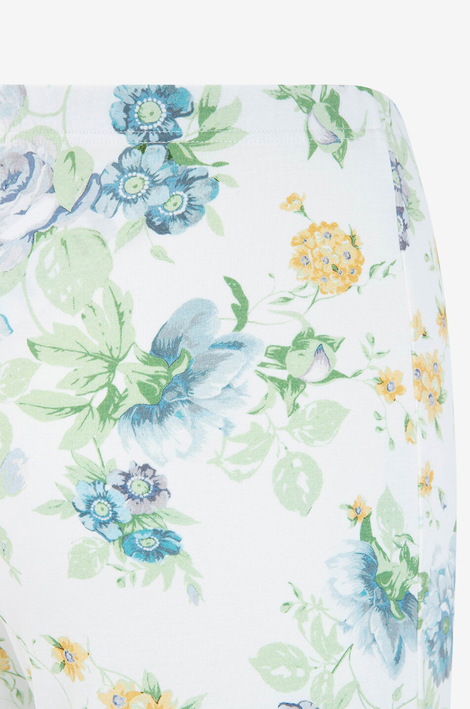Das Pyjama-Set für Damen Tonga von PALADINI ist mit seinem farbenfrohen Blumenmuster besonders bezaubernd. Es besteht aus einer Hose mit Gummibund sowie einem hemdartigen Oberteil mit V-Ausschnitt, Knöpfen zum Verschliessen und kurzen Ärmeln, die mit feiner Spitze verziert sind.