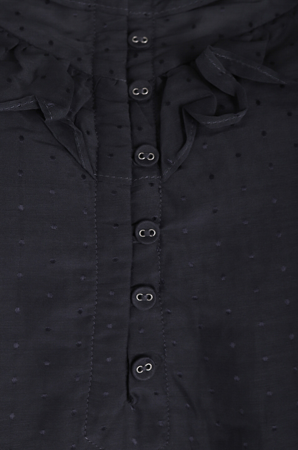 The MAGALI PASCAL women's long-sleeved blouse is adorned with pretty lace details on the sleeves, cuffs and chest. You're sure to love the Swiss dots, the round neck and its soft cotton and silk blend.