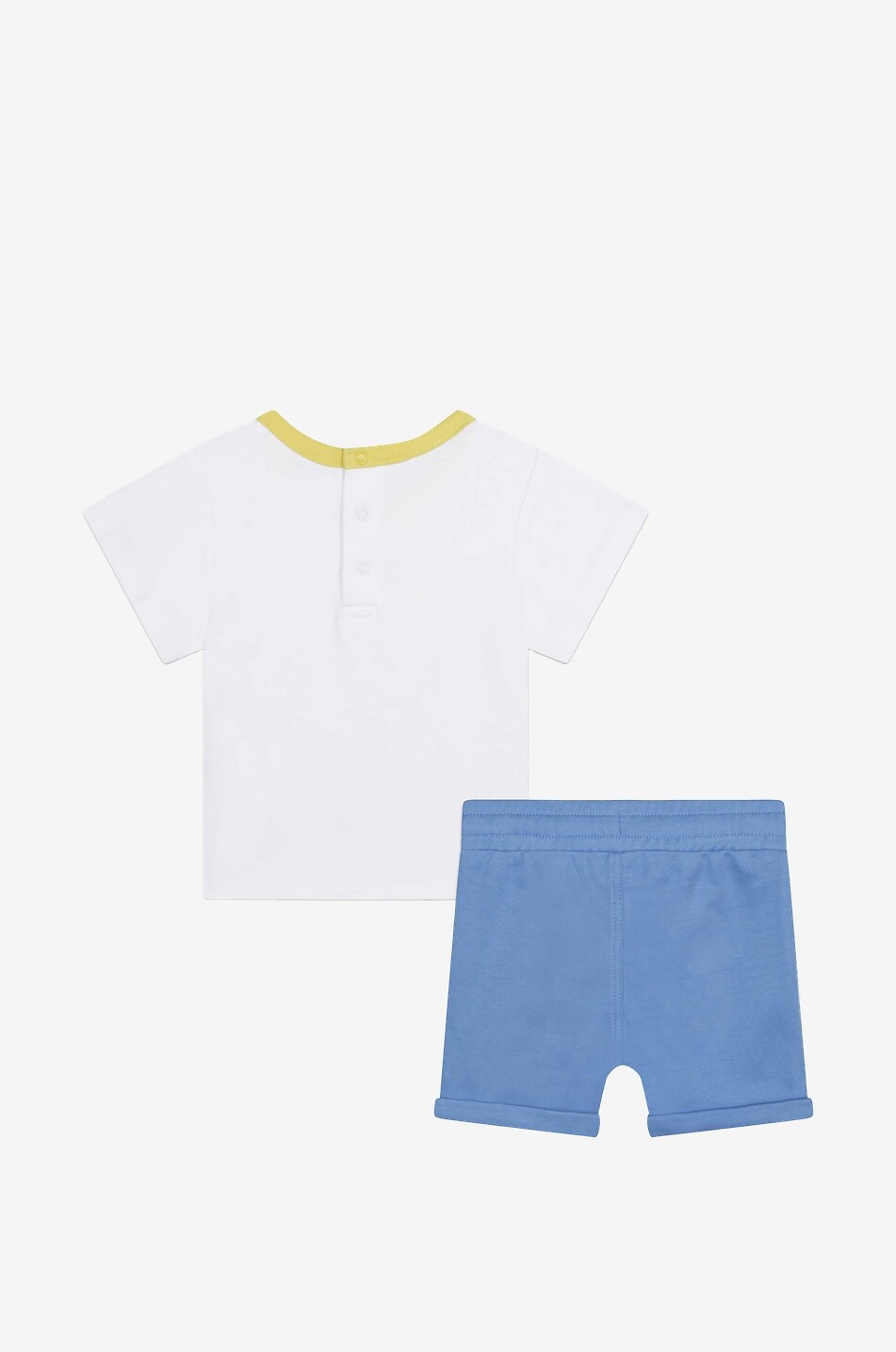 Perfect for the summer season, this 100% cotton baby outfit from THE MARC JACOBS consists of a short-sleeved, round neck T-shirt featuring a trompe-l'oeil shoulder bag print and snap buttons at the back, as well as a pair of colourful logo striped shorts with an elasticated waistband.