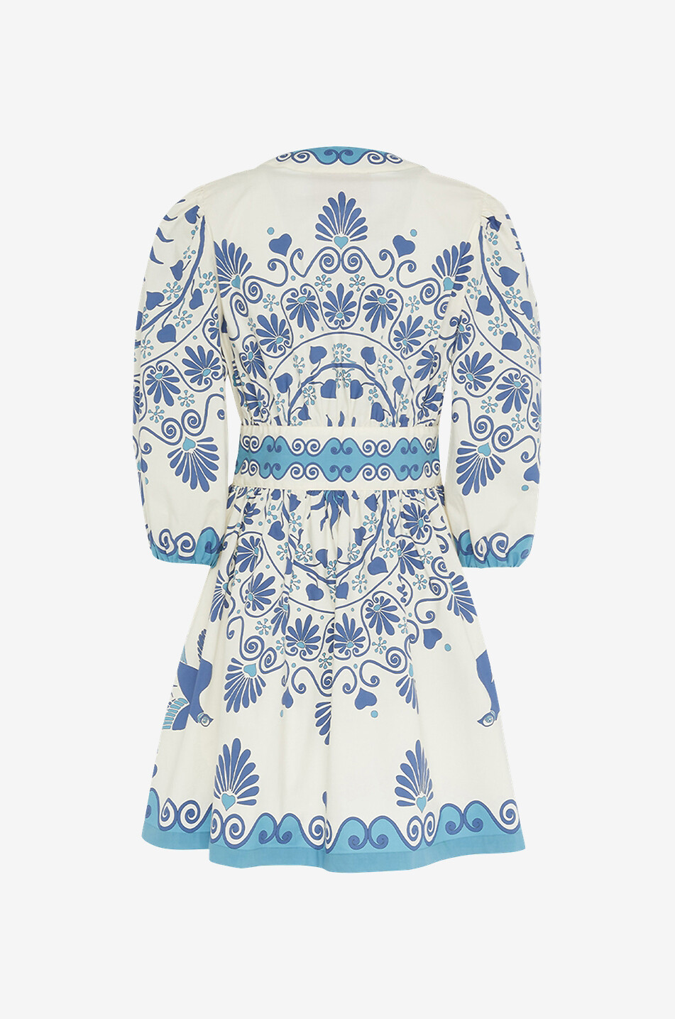 The ULLA JOHNSON's Lya short floral print dress embodies bohemian chic. Its flowing cut, with a plunging neckline and long puffed sleeves, offers a feminine and romantic silhouette. Pair it with leather ankle boots and a wide-brimmed hat for a trendy and sophisticated festival look.