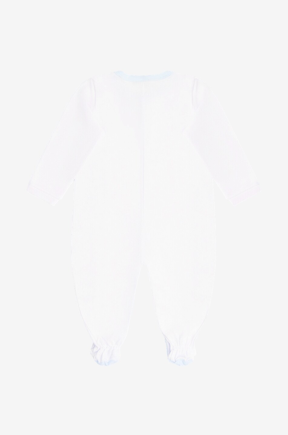 The perfect birth gift, this box by VERSACE will wrap baby in softness. It contains three pieces: a onesie, a beanie and a bib. Each piece is made from soft, breathable pique cotton and enhanced by jersey trims and the iconic Medusa embroidery. The bib and pyjamas feature practical press studs.