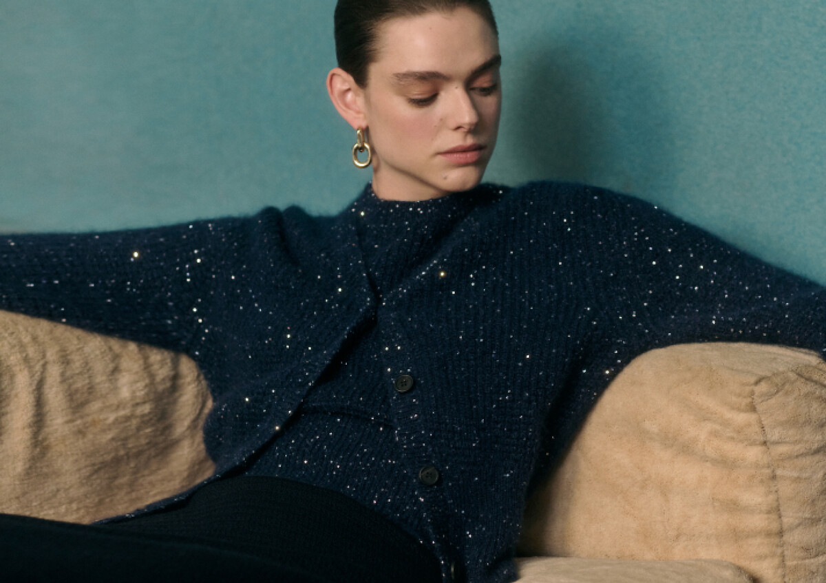 Mottled lurex embellished cable-knit jumper
