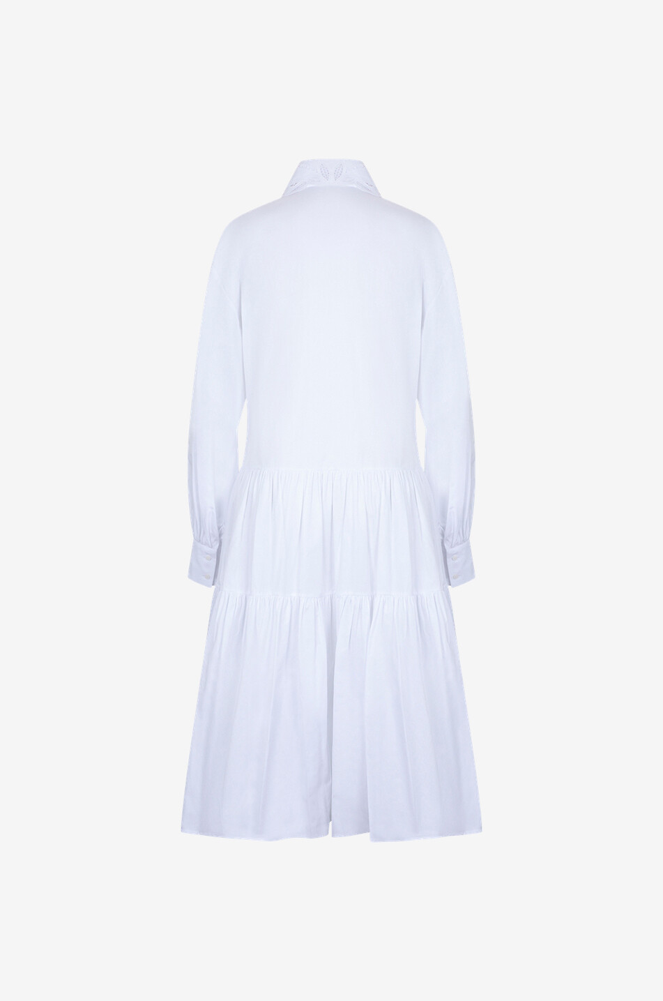 La robe midi pour femme de la marque AKRIS Punto est une pièce à la fois simple et originale. Vous allez adorer sa jupe évasée, sa ceinture à la taille, sa fente en V au niveau du décolleté et son aspect texturé circulaire.