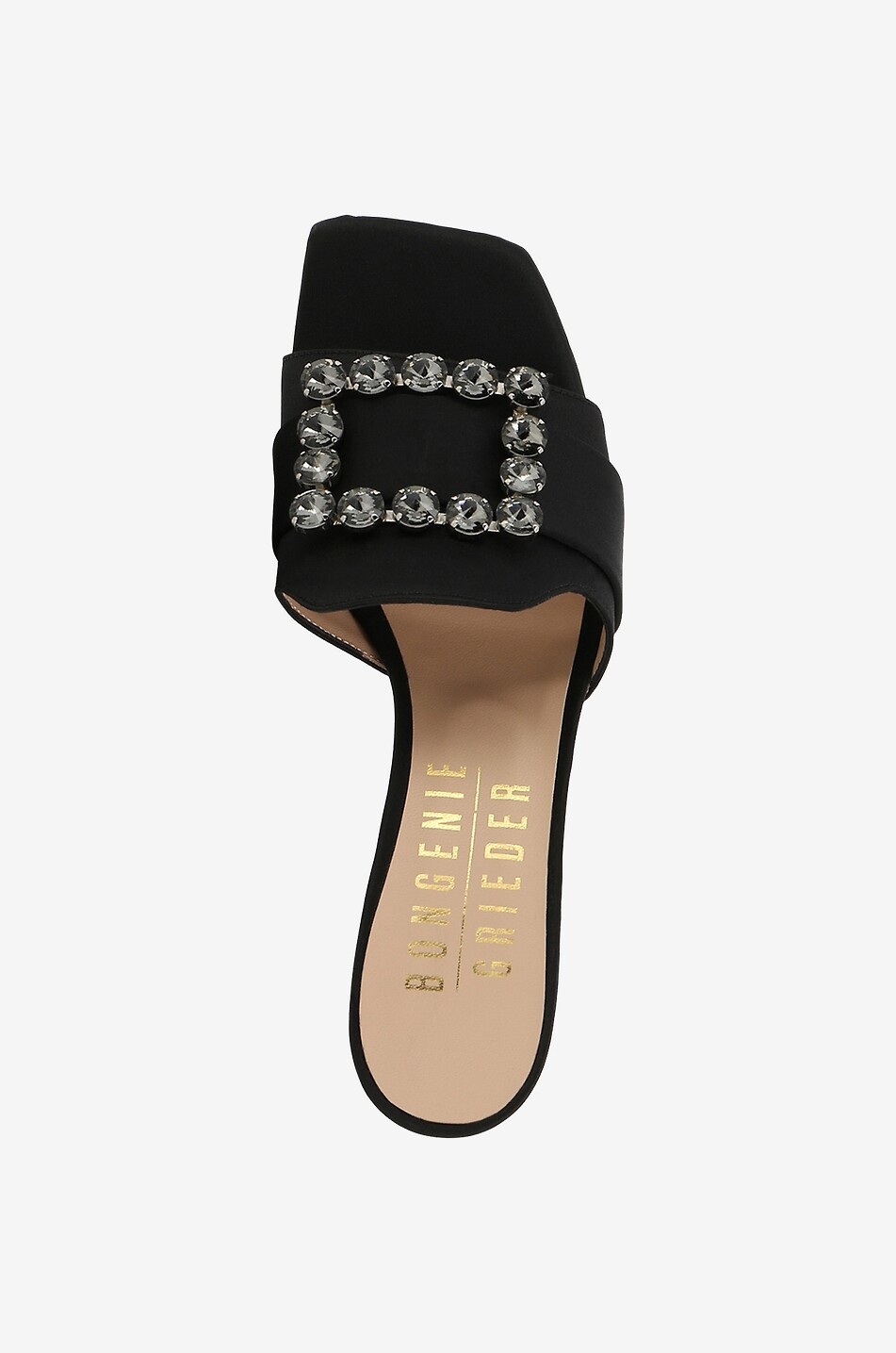 Apportez une touche glamour vos tenues ce printemps et cet été grâce à ces mules signées BONGÉNIE! Confectionnées en satin soyeux, elles sont rehaussées par une large boucle rectangulaire sertie de cristaux scintillants. Leurs bouts ouverts carrés rappellent les designs des années 90, et de petits talons et semelles en cuir apportent la touche finale à ces chaussures féminines.