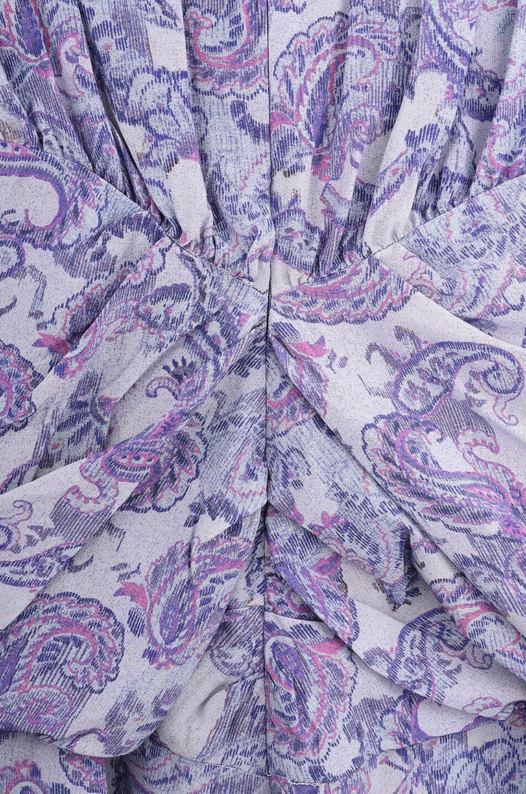 Bohème et féminine, cette longue robe asymétrique signée ISABEL MARANT mettra joliment votre silhouette en valeur. Elle est confectionnée en crêpe de soie raffinée délicatement transparente, et se pare de motifs cachemire séduisants. On aime les fronces judicieusement placées au niveau de la taille et la découpe en forme de goutte juste en dessous du col rond! De longues manches, de petites épaulettes et une fermeture éclair dissimulée dans le dos la complètent. Portez la vôtre avec une paire de bottes en daim, et peut-être une paire de boucles d'oreilles pendantes.