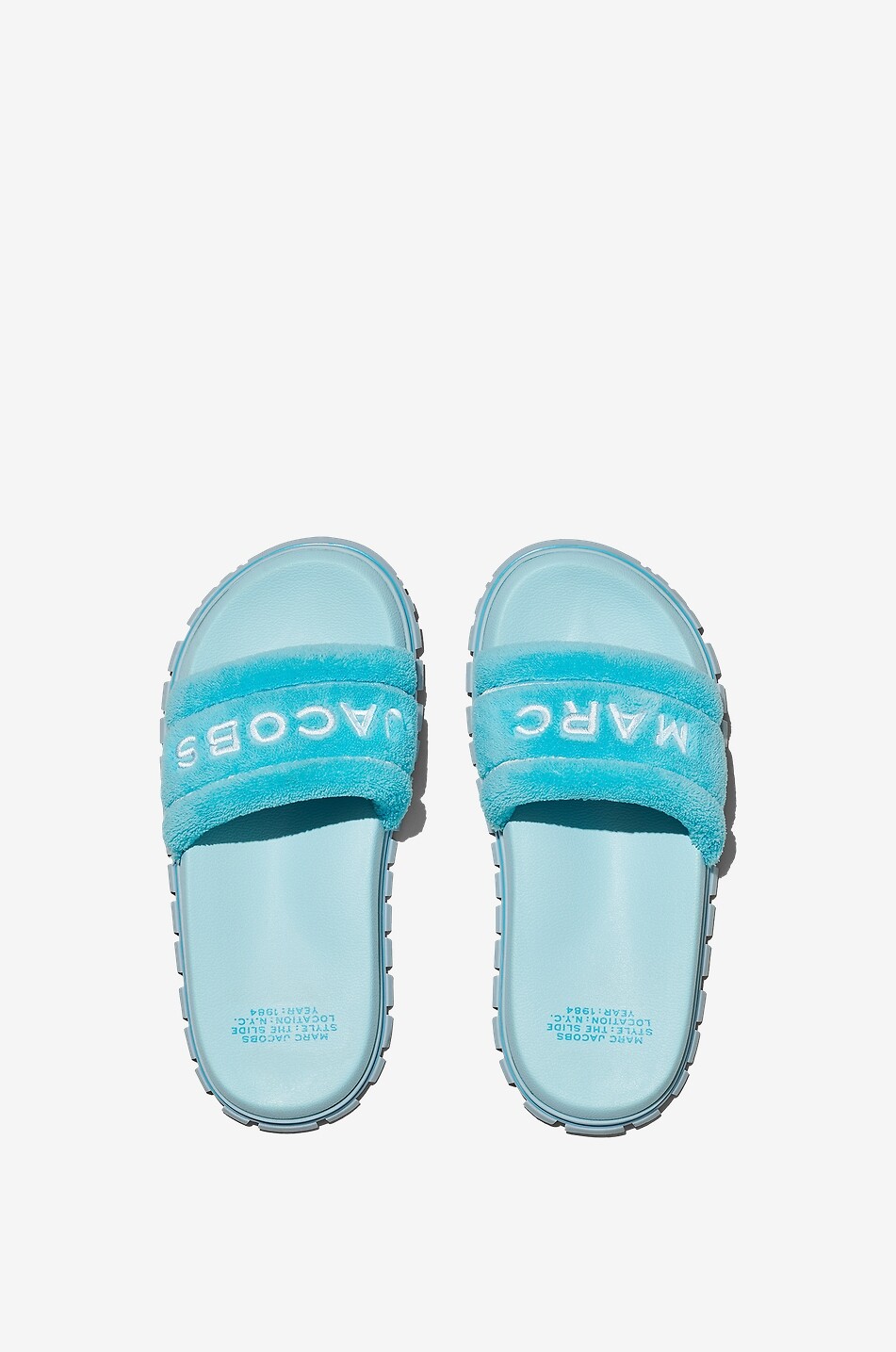 Chouchoutez vos pieds du confort et de la douceur de ces mules signées MARC JACOBS! Les chaussures ouvertes arborent d'épaisses semelles crantées en caoutchouc dotées de semelles intérieures ergonomiques. Leurs brides sur le dessus sont réalisées en éponge effet peluche, et sont brodées du logo de la maison New Yorkaise. Portez les vôtres avec une robe midi ou un jean et un T-shirt boxy.