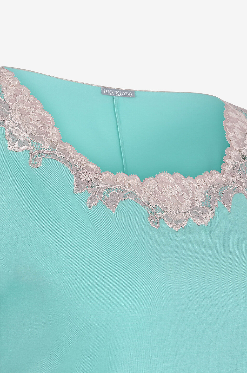L'ensemble de pyjama pour femme Tonga PALADINI est tout à fait charmant avec son motif floral coloré. Il se compose d'un bas à taille élastiquée ainsi que d'un haut type chemise à col V avec des boutons de fermeture et des manches courtes décorées de fine dentelle.