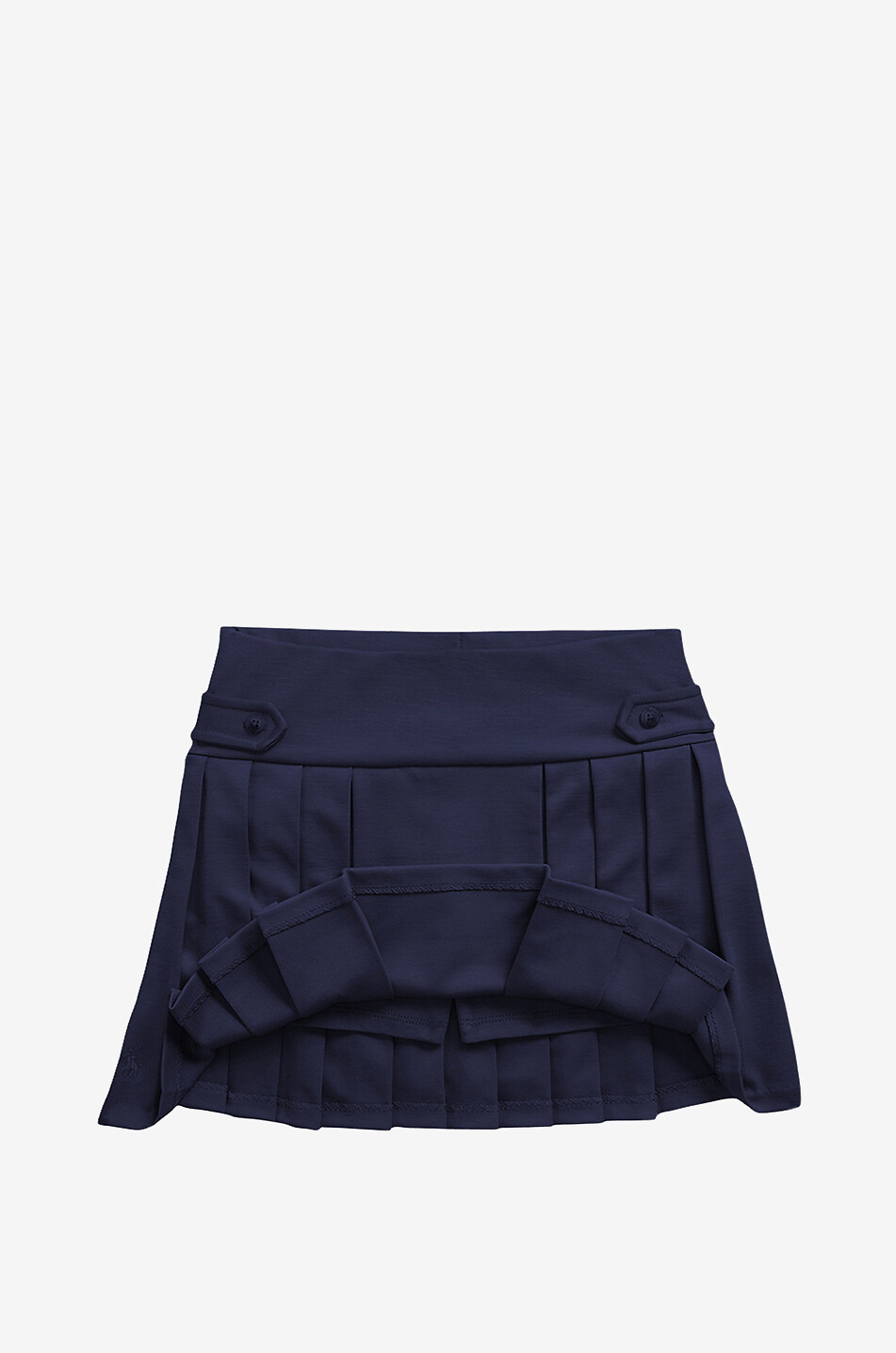Votre fille sera la plus chic de la cour de récré dans cette minijupe signée Polo Ralph Lauren. La jupe plissée brodée de l'iconique logo Pony est doublée d'un short en jersey de coton stretch. Complétez sa tenue avec un collant, des ballerines, une blouse et un cardigan.