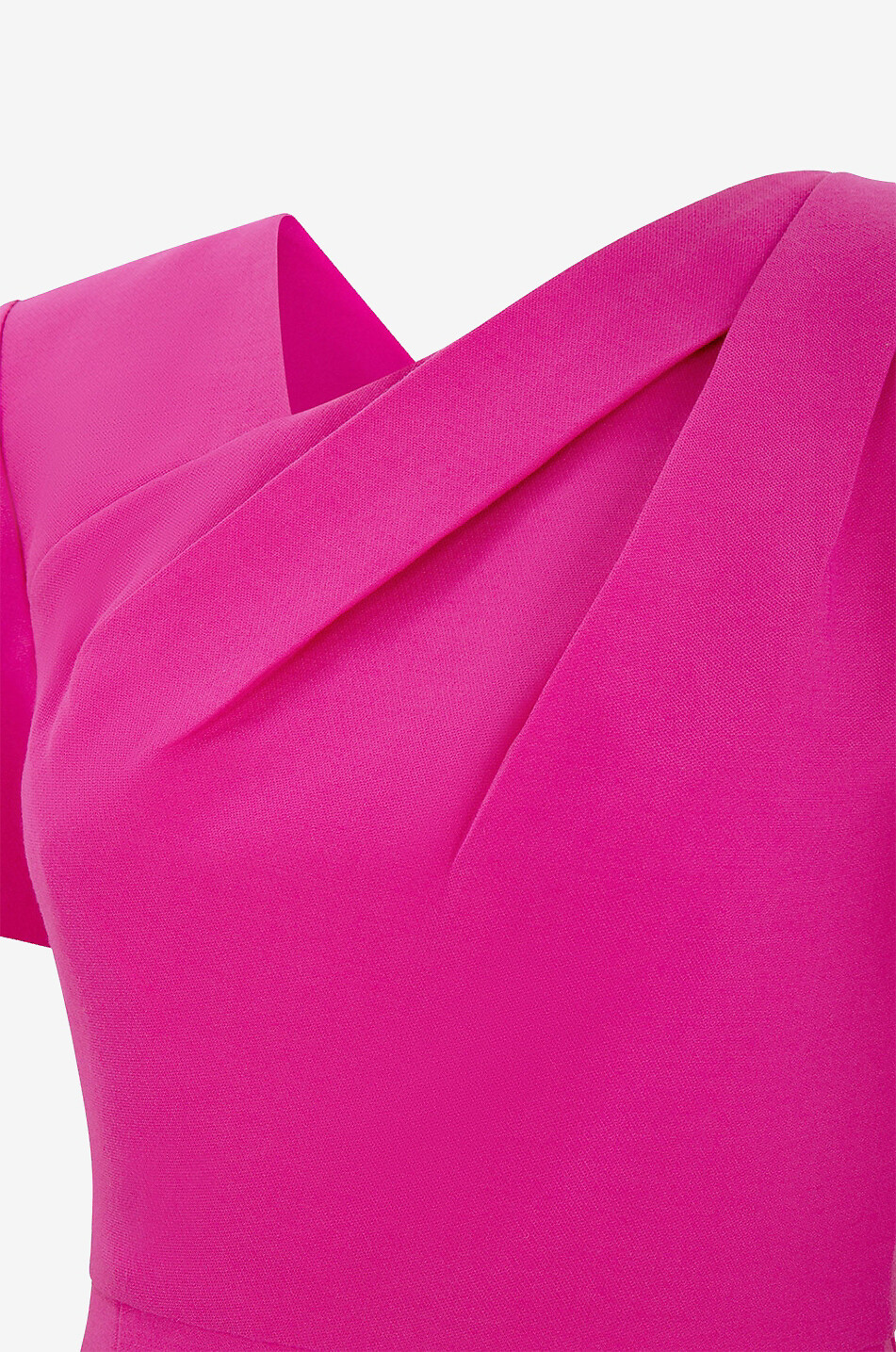 Du bureau en soirée, tout le monde ne parlera que de vous dans cette magnifique robe midi signée ROLAND MOURET! La robe près du corps est confectionnée en laine et soie mélangées, et est dotée d'une fermeture éclair dans le dos, d'épaulettes et de manches courtes. Son encolure en V asymétrique est rehaussée par un drapé qui ferait presque penser à un sari noué autour de l'épaule gauche. Une fente dans le dos complète la robe rose vif. Portez la vôtre avec une paire de créoles et des escarpins.