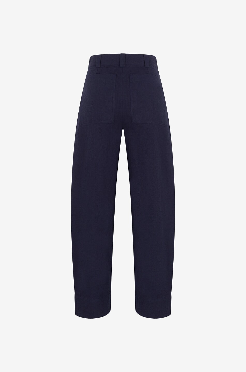 Basique parfait pour la saison froide, ce pantalon large légèrement raccourci signé soeur séduit par sa matière confortable et sa teinte chaude. Il est confectionné en sergé 100% coton légèrement délavé, et arbore une taille mi-haute sans passants, une fermeture éclair avec bouton et bouton pression et quatre poches plaquées. Des plis surpiqués structurent les jambes devant et à l'arrière. Rentrez une blouse imprimée dans sa taille, et complétez votre tenue avec un cardigan et une paire de mocassins tendance.
